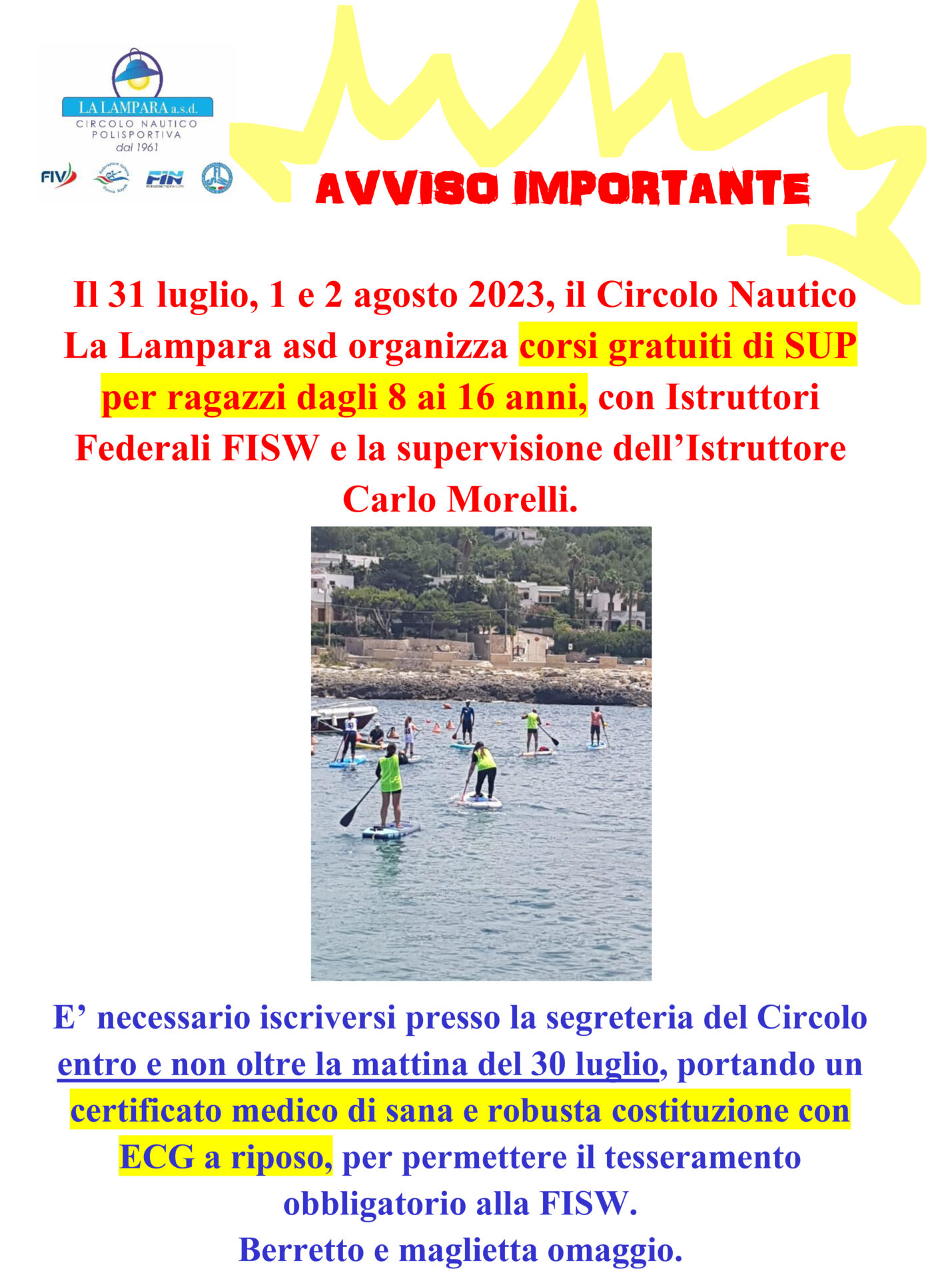 Il Circolo Nautico โ€œLa Lamparaโ€ asd dal 31 luglio al 2 agosto offre la possibilitร  ai ragazzi di sperimentare quest’affascinante attivitร .