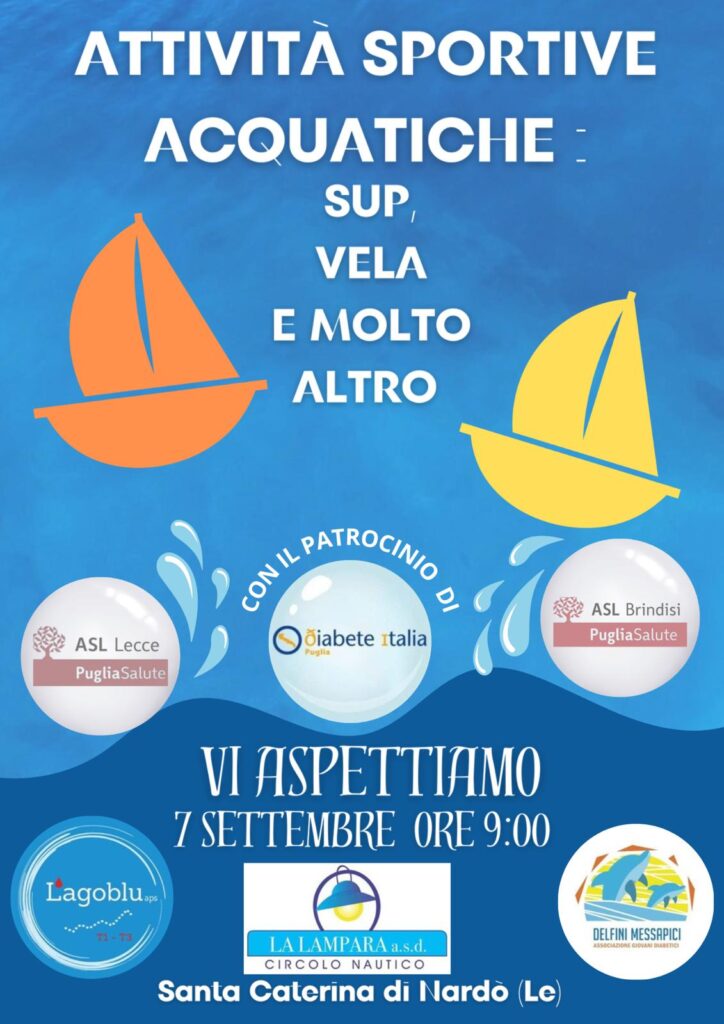 Anche quest’anno il Circolo Nautico La Lampara ASD apre le sue porte ai ragazzi con diabete di tipo 1: il prossimo 7 settembre si terrà infatti la terza edizione di una giornata speciale dedicata alla scoperta delle discipline acquatiche, in particolare vela e SUP, rivolta a circa 30 giovani afferenti alle ASL di Brindisi e Lecce.